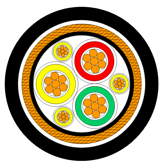 交聯(lián)聚乙烯絕緣聚烯烴護套銅絲纏繞包銅帶雙重屏蔽低煙無鹵阻燃變頻器用主回路電纜 |