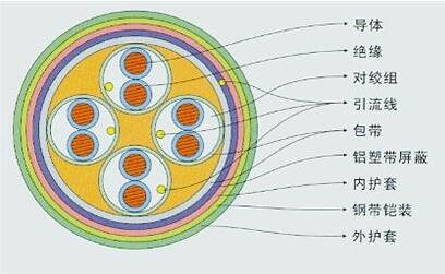 銅芯無鹵低煙絕緣及護套對絞組鋁/塑復合總屏蔽鋼帶鎧裝阻燃電子計算機電纜 |