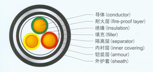 銅芯聚氯乙烯J緣聚氯乙烯護(hù)套鋼帶鎧裝耐火電力電纜
